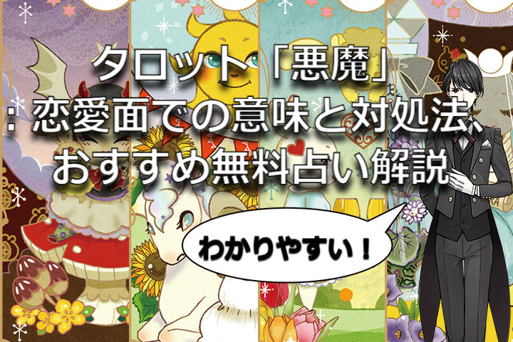 はじめに タロットカードで恋愛面を占ったら「悪魔」が出てしまったということはありませんか? にゃんた タロットの「悪魔」って怖いカードなの? ねこすけ 見た目は怖そうだけど、実は大切なメッセージが込められているカードなんだよ。依存や誘惑からの...
