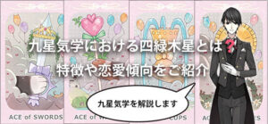 生年月日から導き出される九つの星・九星(きゅうせい)と干支、五行(ごぎょう)と呼ばれる万物は五つの元素から成り立っているとされる説を組み合わせてできた占いと言われています。