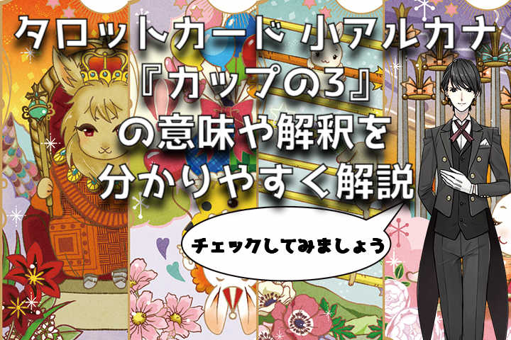 大アルカナと比べ、小アルカナはあまり知られていないこともあります。これから本格的にタロットを始める方にもいい機会ですので、さっそく【小アルカナ カップ3】について、深堀していきましょう。