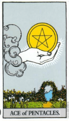 大地を象徴するペンタクル(またはコイン)は、物質などの現実世界を表します。